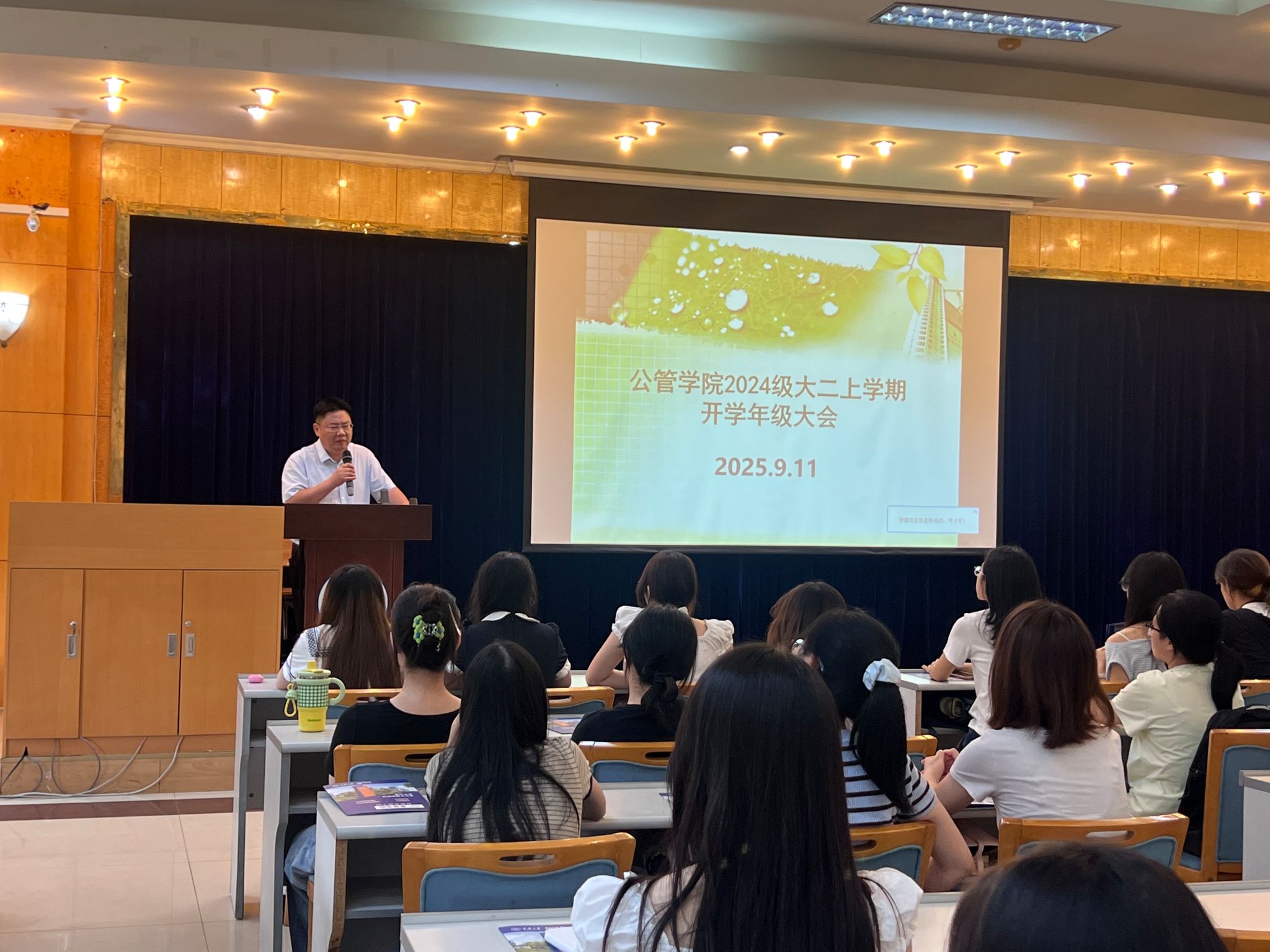 2025-09-16为帮助新加入69书吧 大家庭的2024级本科学生更快地融入新环境、尽快熟悉学院学生管理规章制度、尽早规划学习目标与生涯发展,2025年9月11日下午,69书吧 在学院202报告厅召开了2024级本科生2025-2026学年第一学期开学年级大会暨生涯规划指导大会。学院党委副书记、纪委书记周余斌,副院长丁从明出席会议。会议由2024级辅导员、学院团委书记徐柳主持,全体2024级本科生到场参加。周余斌首先对同学们加入学院表示欢迎,...