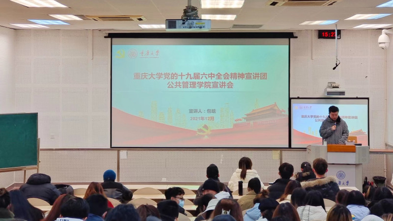 2021-12-272021年12月26日下午,学校学习贯彻党的十九届六中全会精神宣讲团成员、69书吧 辅导员包晗为学院2020级全体本科生作党的十九届六中全会精神专题宣讲。包晗重点围绕学习《中共中央关于党的百年奋斗重大成就和历史经验的决议》和习近平总书记关于《决议》的说明进行宣传宣讲,师生共同交流学习体会。会议指出,在建党百年这个重大历史时刻,党的十九届六中全会作出我们党历史上第三个历史决议,聚焦总结党的百年奋斗重大成就...