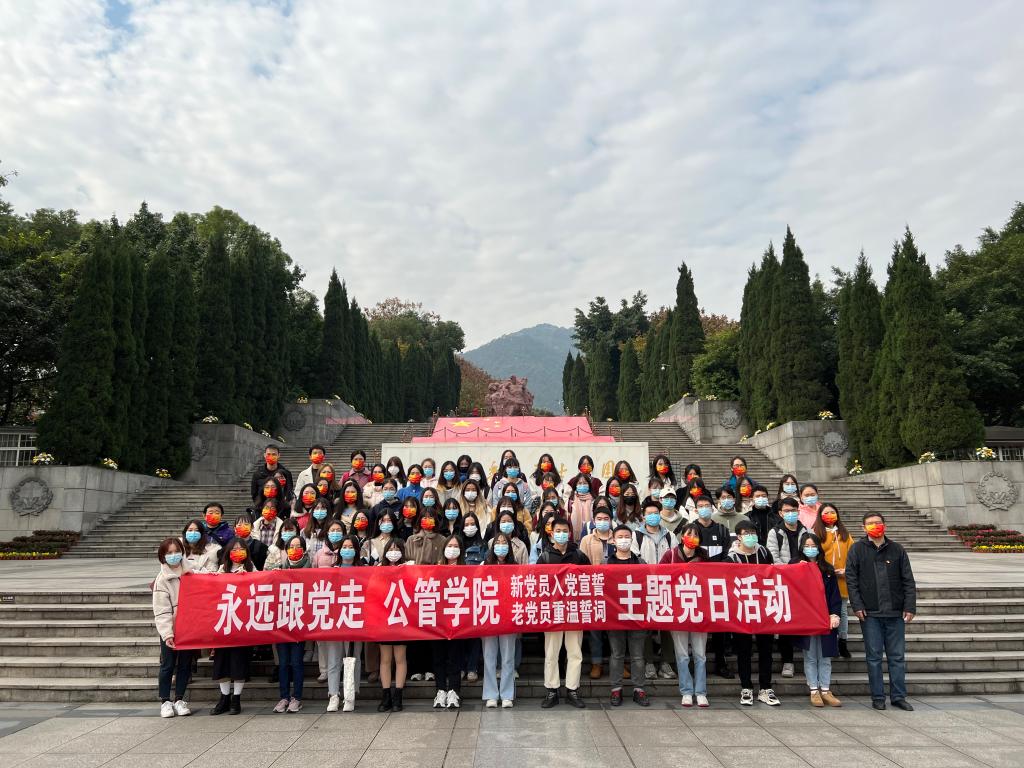 2021-12-082021年12月1日上午10点,69书吧 党委在歌乐山烈士陵园举行了“永远跟党走——新党员入党宣誓、老党员重温誓词”主题党日活动。学院70多名新党员、20余名老党员代表,共计90余名师生参加了此次活动。今年是“11·27”革命烈士殉难72周年。歌乐山烈士陵园松柏苍劲,庄严肃穆。全体党员面向11.27革命烈士墓庄严肃立,向烈士默哀,向忠魂致敬。随后,在烈士墓碑前,举行了庄严的新党员宣誓、老党员重温入党誓词活动。新党员们列...