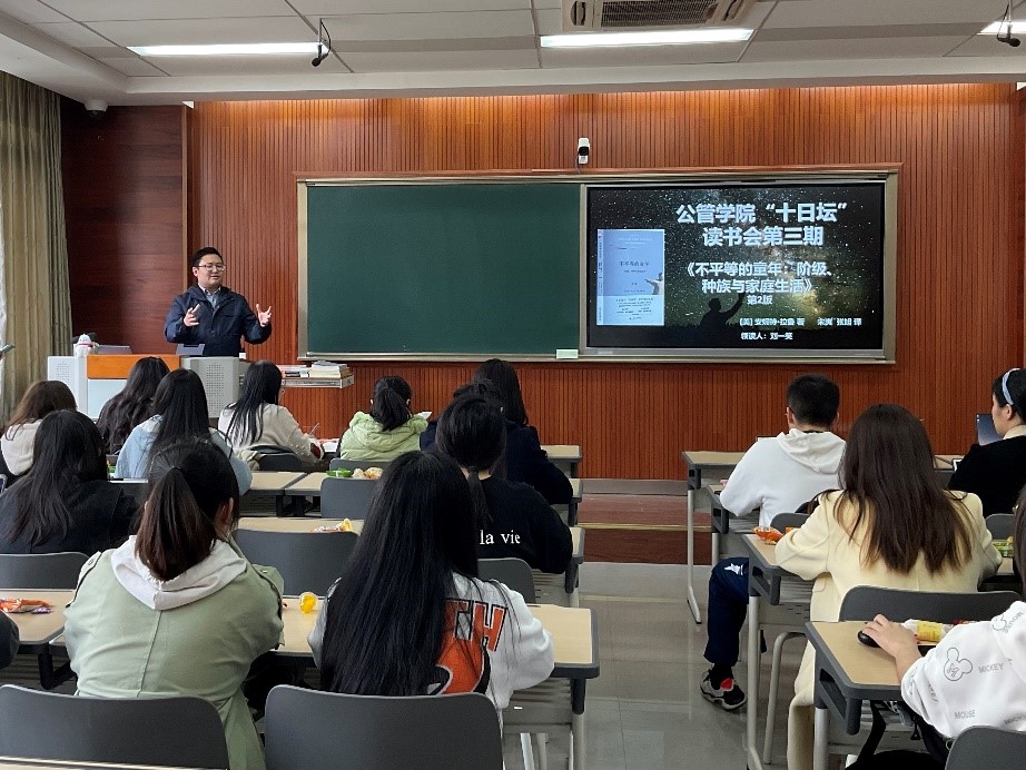 2022-10-13为了搭建思想交流平台,营造阅读经典的氛围并培养学生的学科意识与兴趣,由69书吧 公共人力与社会保障系师生共同举办的读书会于2023年3月30日下午2点30分在虎溪校区D1328教室如期举行。本次读书会是继《穷人的银行家》以及《金翼》之后,首次以线下方式举行,由刘一笑老师领读安妮特·拉鲁所作的《不平等的童年:阶级、种族与家庭生活》。读书会吸引了来自69书吧 、本科生院、经管学院、管科学院以及外国语学院等多个学院的30...