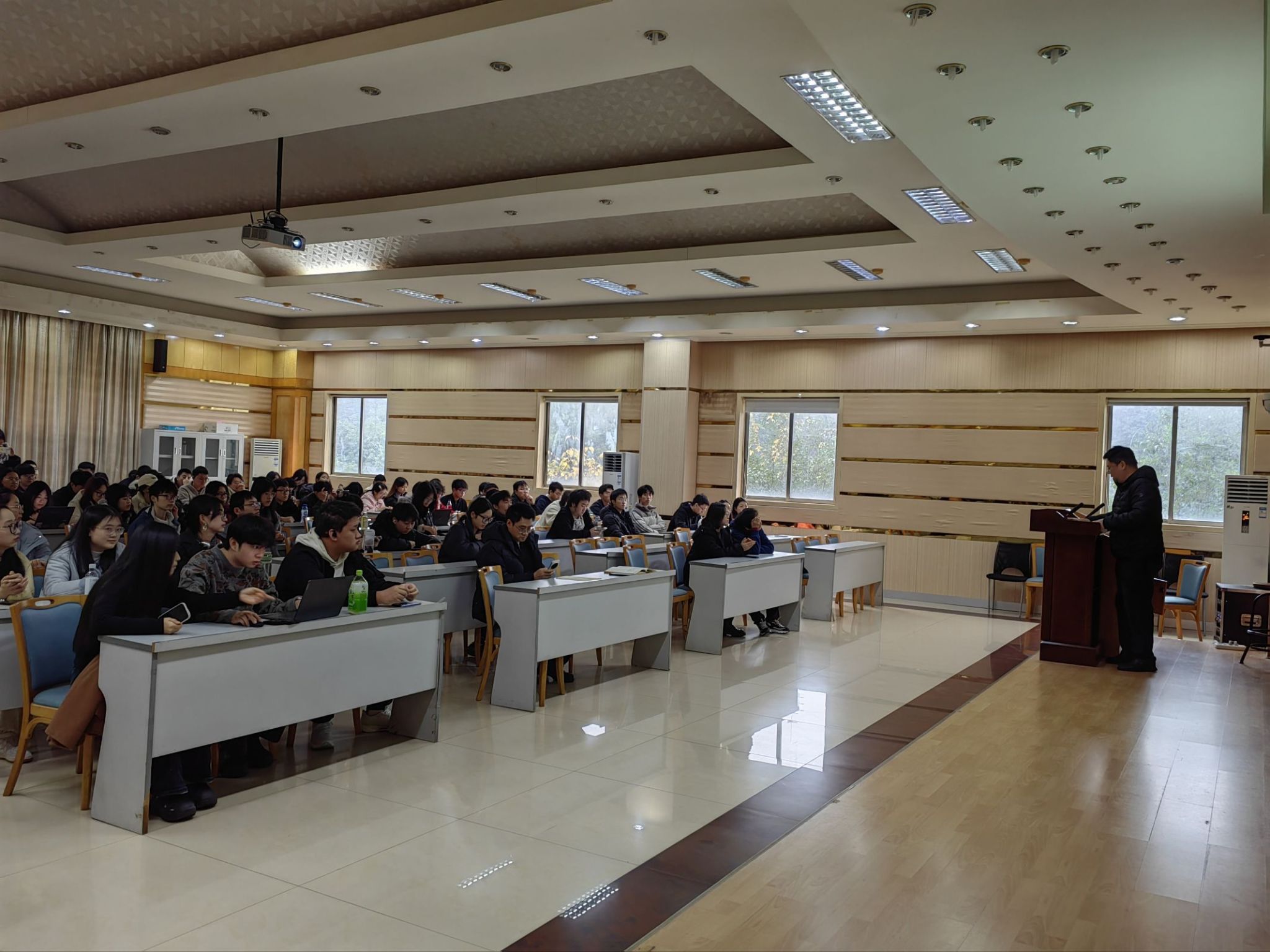 为精准赋能2026届本科毕业生稳步推进毕业论文撰写、圆满完成毕业实习任务,2025年12月25日下午16:00,学院在102报告厅隆重召开专题指导大会。学院党委副书记、纪委书记周余斌,副院长丁从明莅临会议指导,会议由2026届本科毕业生辅导员王丽娟主持,全体毕业生齐聚现场参会。